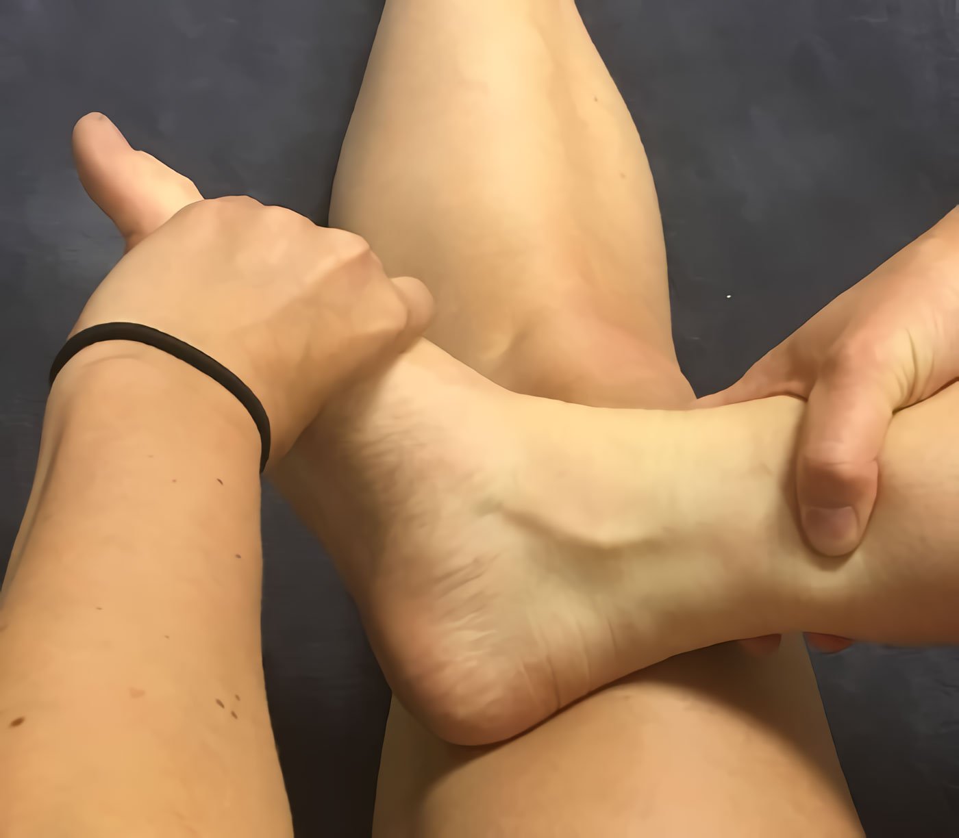 Dorsiflexie en Plantairflexie: Mobiliseer de enkel in beide richtingen binnen de pijngrens. Gebruik handen om de voet te duwen en te trekken.