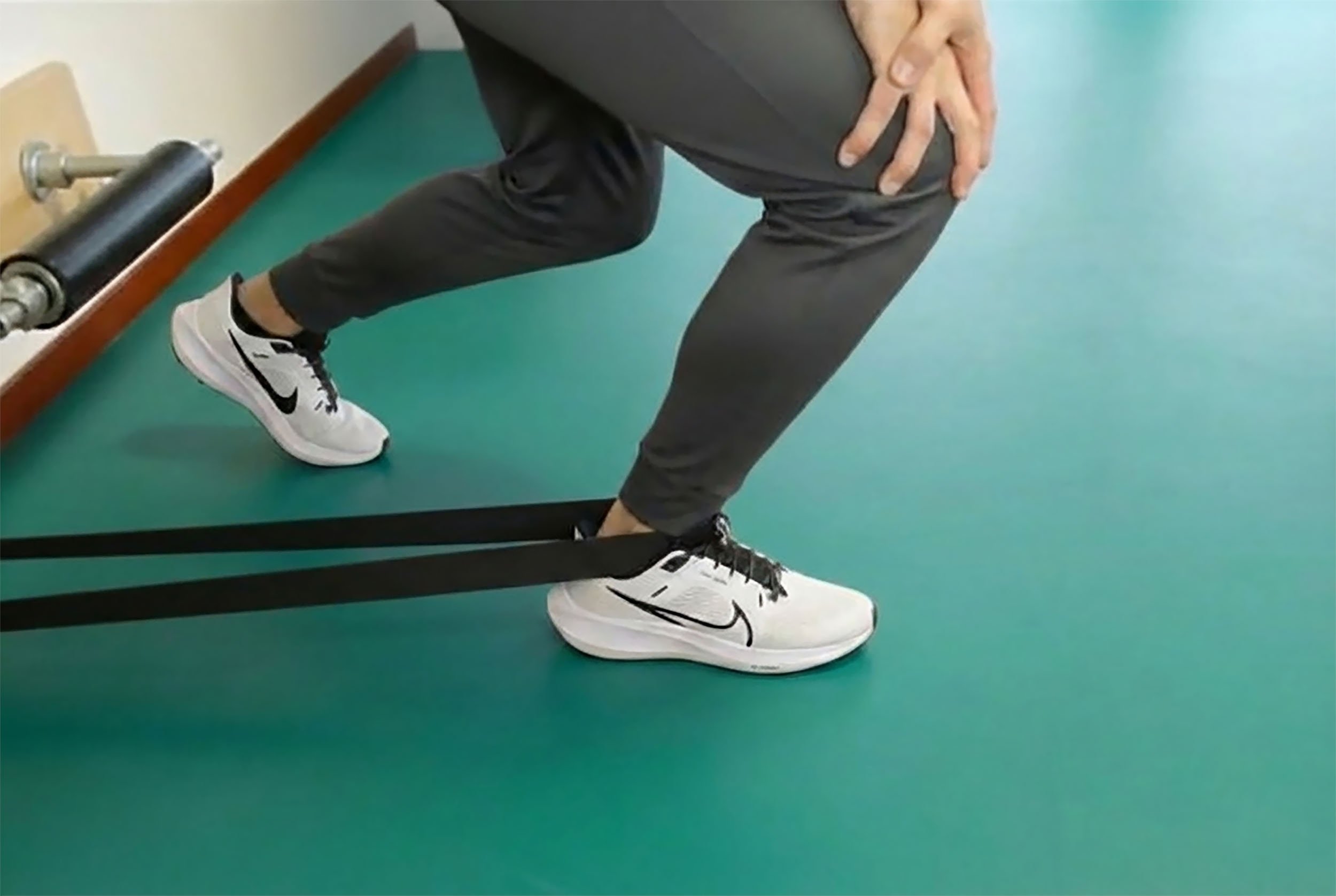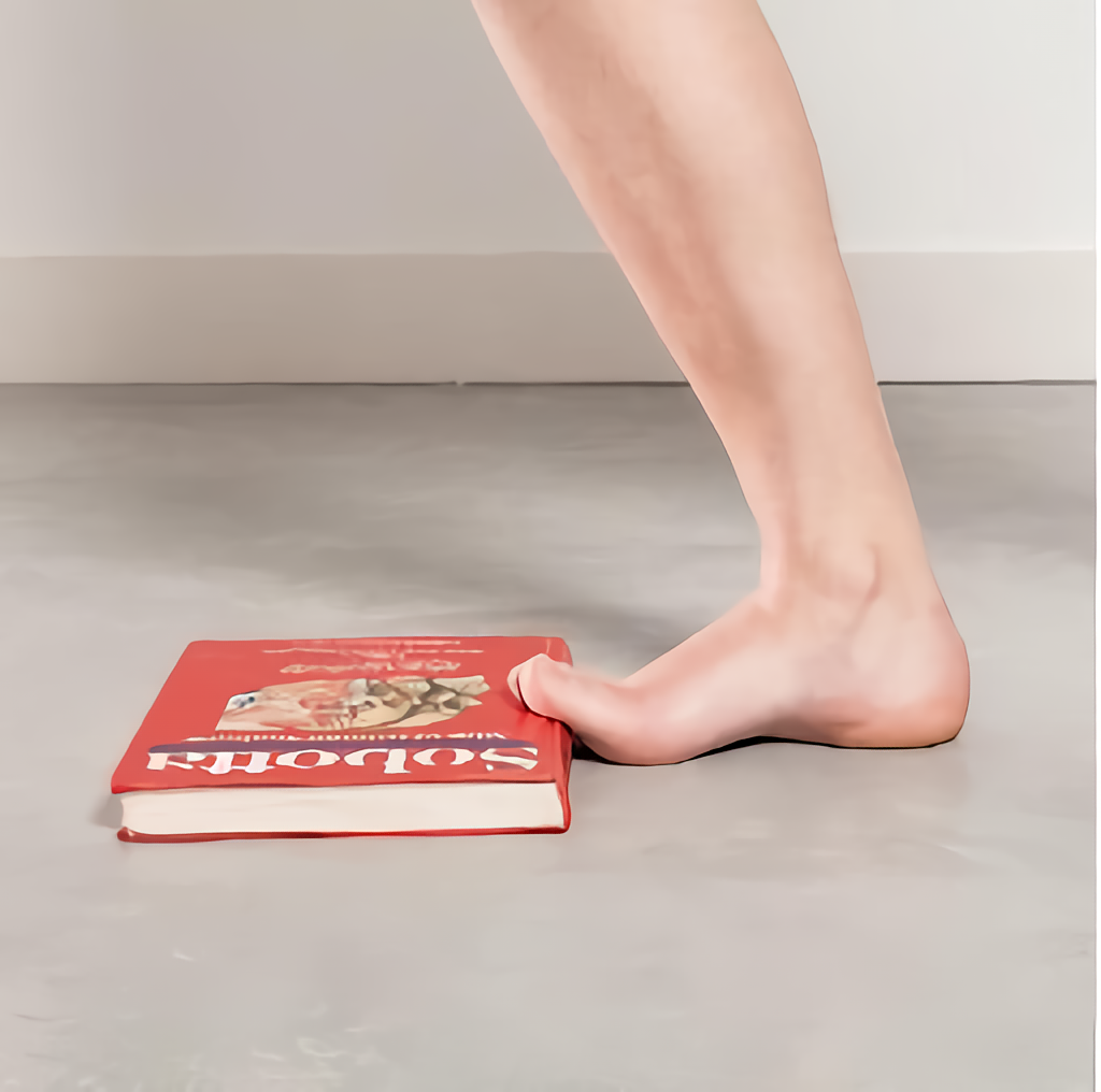 Ga met de tenen op een boek staan en breng de knie naar voren terwijl de hak op de grond blijft. Doe dit elk uur 10 keer.