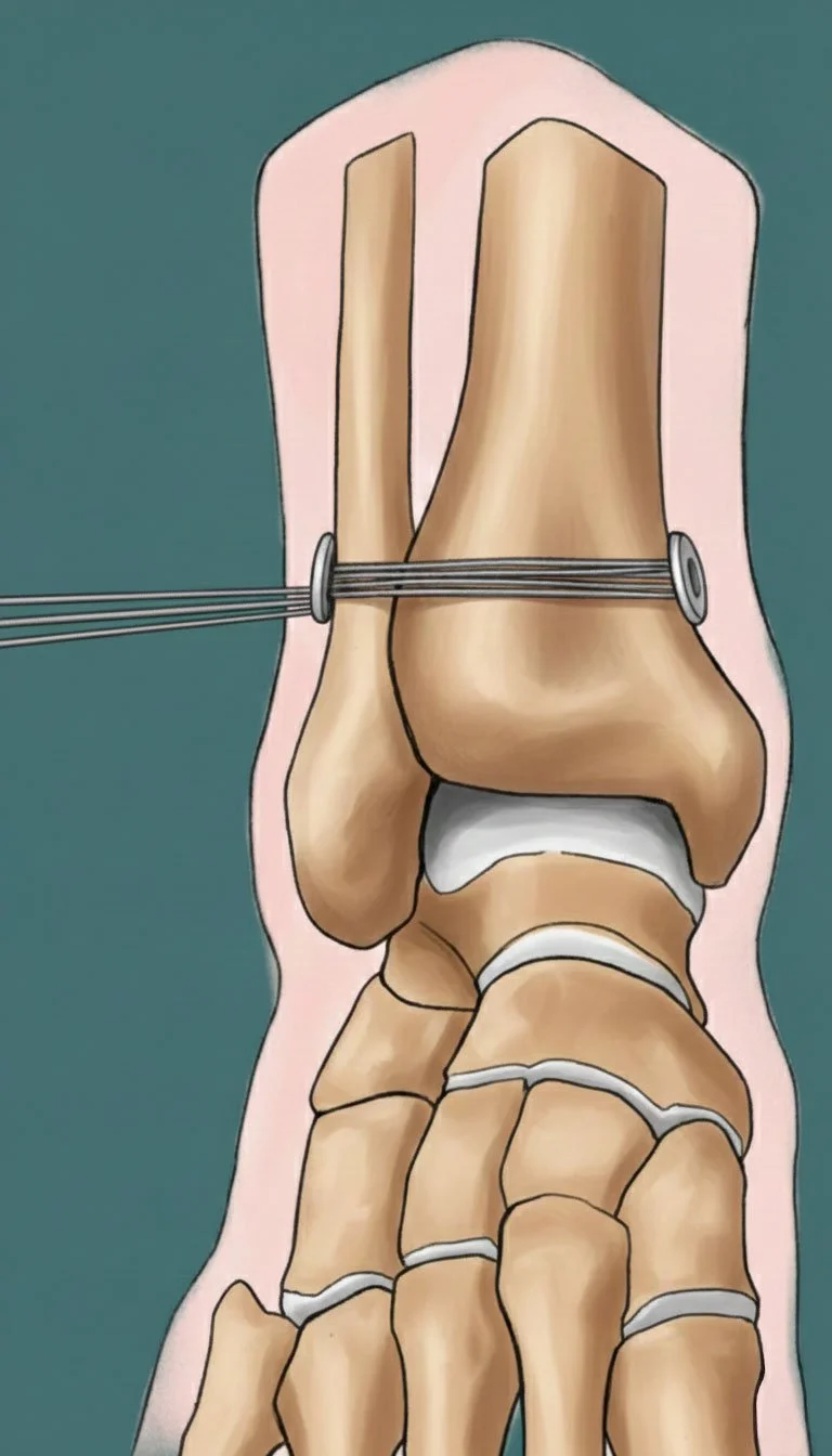 Chirurgische behandeling: In ernstige gevallen kan een operatie nodig zijn om de syndesmose te stabiliseren. Bij een operatie kan de syndesmose met een “tight rope” weer verstevigd worden. Dit is nooit zo sterk als uw eigen syndesmose, maar geeft vaak een goede pijnverlichting. Meestal wordt het behandelen van de syndesmose gecombineerd met het hechten van de buitenste enkelband.